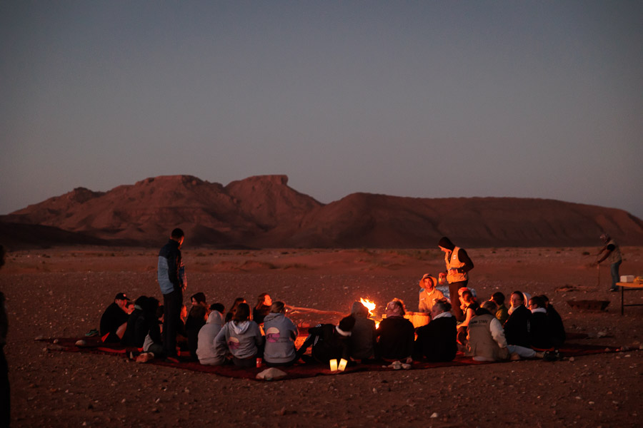Il y aura toujours un véhicule ou deux (en fonction de la taille du groupe) sur le terrain avec nous pour permettre de ramener une personne au riad ou bivouac en cas de besoin.