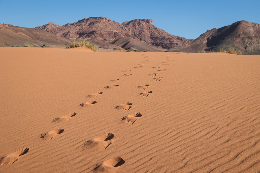 Les chaussures hautes et rigides (de montagne) ne sont pas adaptées au désert.